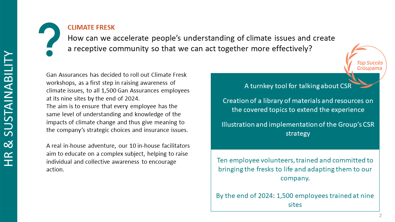 The aim of the project is to understand and raise awareness of the impacts of our actions on the climate through workshops led by employees committed to the cause.