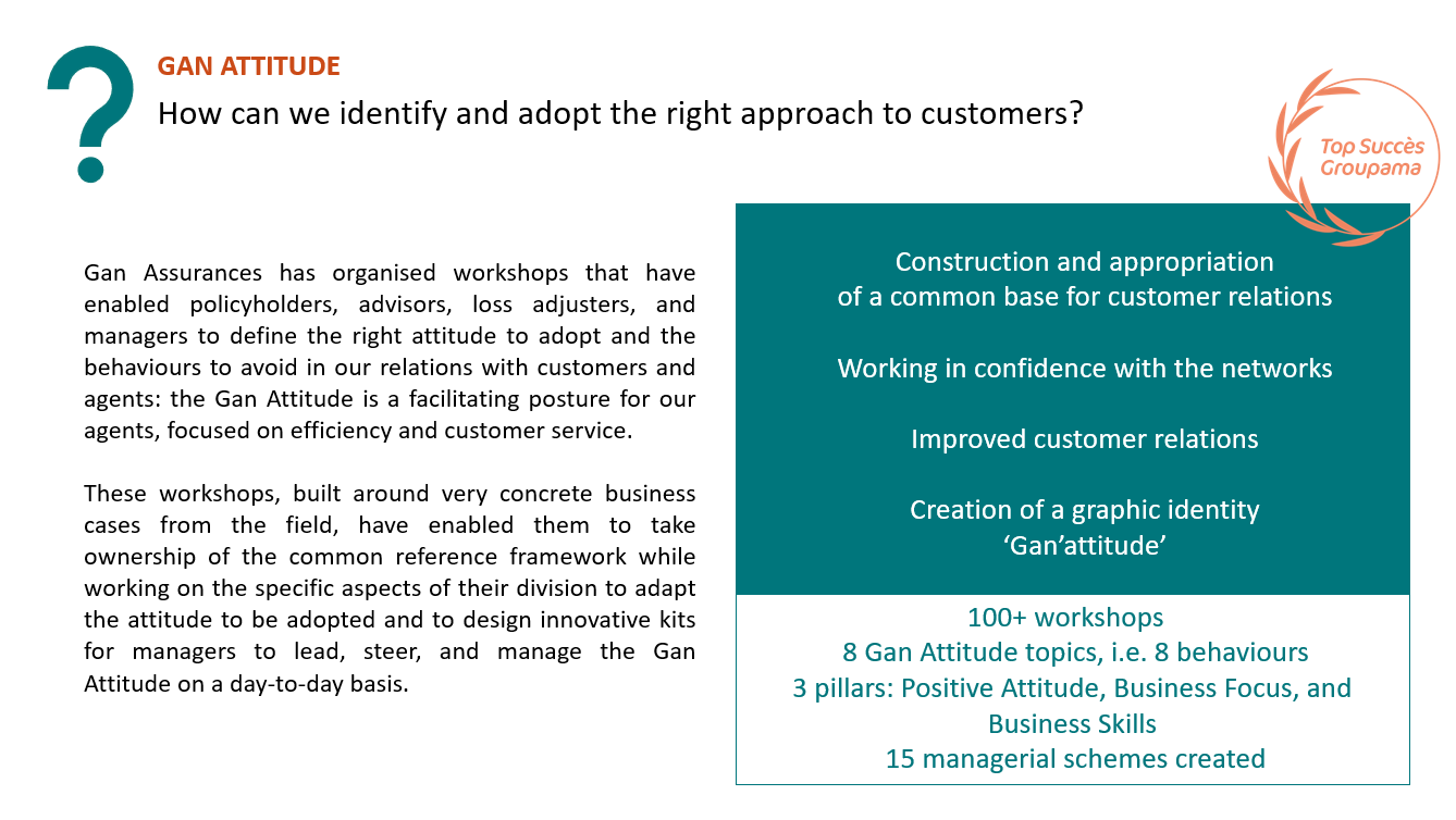 By taking part in workshops, employees and managers define the right attitude and behaviour to adopt when dealing with customers and agents.