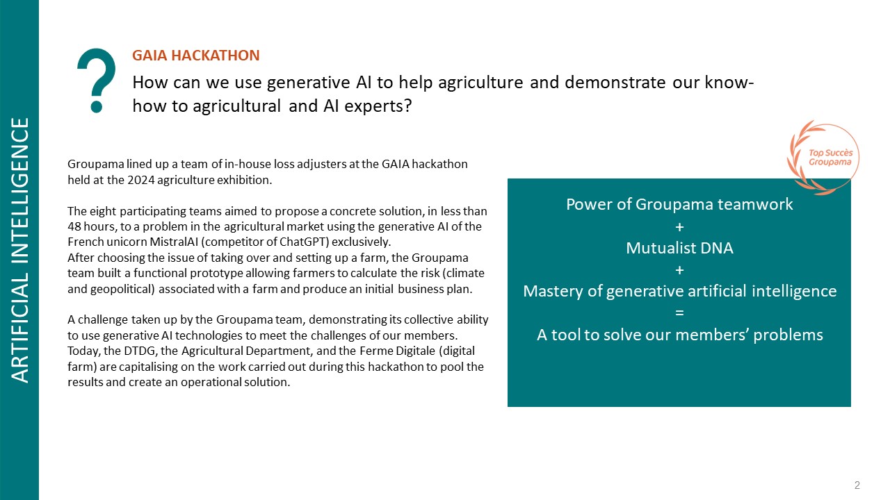 At the agricultural exhibition, in less than 48 hours, a team of in-house loss adjusters, along with an elected farmer from GCA, created the first risk assessment interface to help farmers take over or set up a farm.