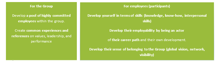 The overall aim of the programme is to promote the development of existing talents and to mobilize these talents for the Group. It is a project co-managed by Group HR and International Department of GMA. The training is intended for experts or managers of all professions, in France and abroad.