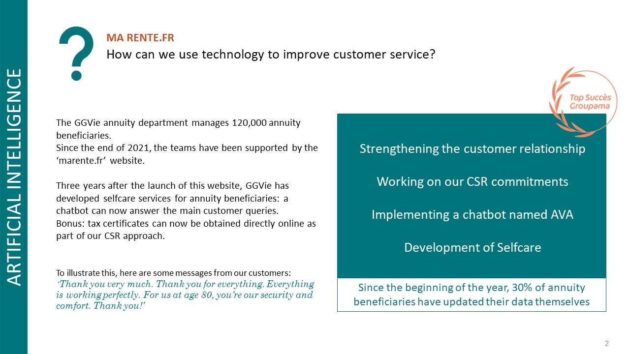 Customers are happy with the website, which simplifies the lives of annuity beneficiaries through a conversational chatbot that answers their main questions.