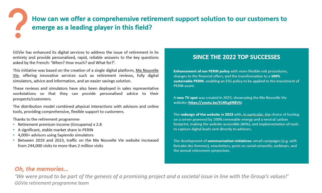 Groupama Gan Vie has designed a website that offers comprehensive retirement support to our customers. The website’s tools are also integrated into the workstations of sales representatives, allowing them to provide personalised advice.