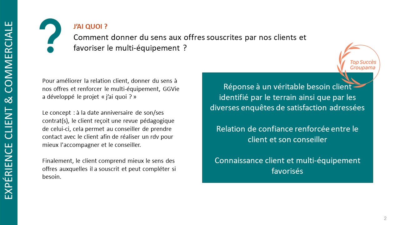 Chaque année, à la date anniversaire du contrat, le client bénéficie d’une revue de ses garanties pour redonner du sens aux offres auxquelles il a souscrit et les compléter si ses besoins ont évolué.